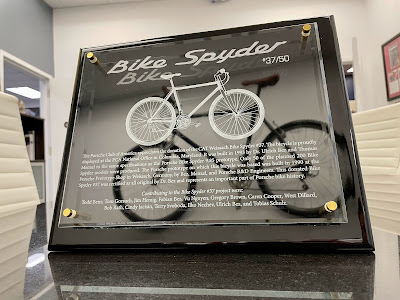 The Bike Spyder #37 contributor plaque and a water bottle that was used on Dr Bez’s five-week Porsche Bike Spyder 9.85 prototype Pakistan ride have been added to the bike display.